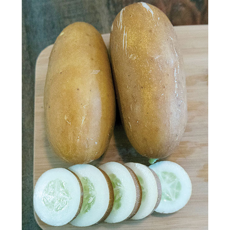 (6-7”) This is possibly the ugliest, most delicious cucumber you can grow. Crisp, sweet and free of bitterness. Whitish yellow skin until the cucumbers get 6-7” long and then turns russet brown. It is a very old Ukranian variety. 63 days.