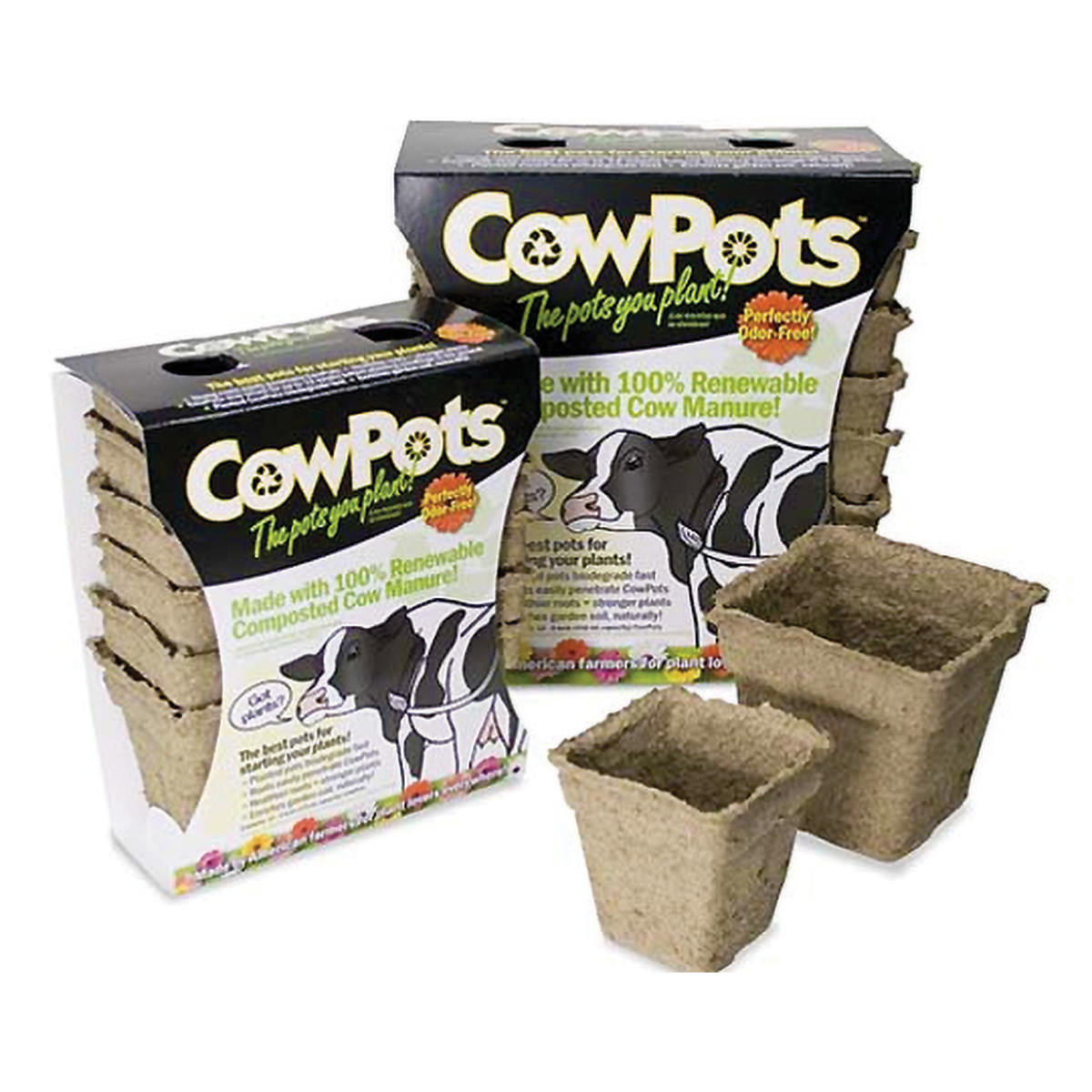 A CowPot is an exciting high-performing alternative to plastic and peat pots. These earth-friendly “pots you plant” are made with biodegradable, 100% renewable resource composted cow manure, unlike peat which is mined from bog eco-systems or plastic which is derived from finite fossil sources.