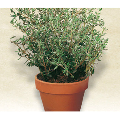 (12”) The upright plants have grey green leaves with a sweet thyme flavor. This is a good variety for harvesting the whole plant.