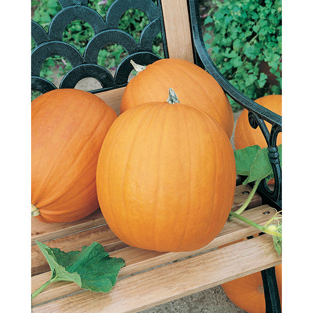 (8–10 lbs.) Firm, medium globed, orange skinned with yellow-orange flesh. Needs space and fertile soil. Cut from vine. Excellent for pies. 100 days.