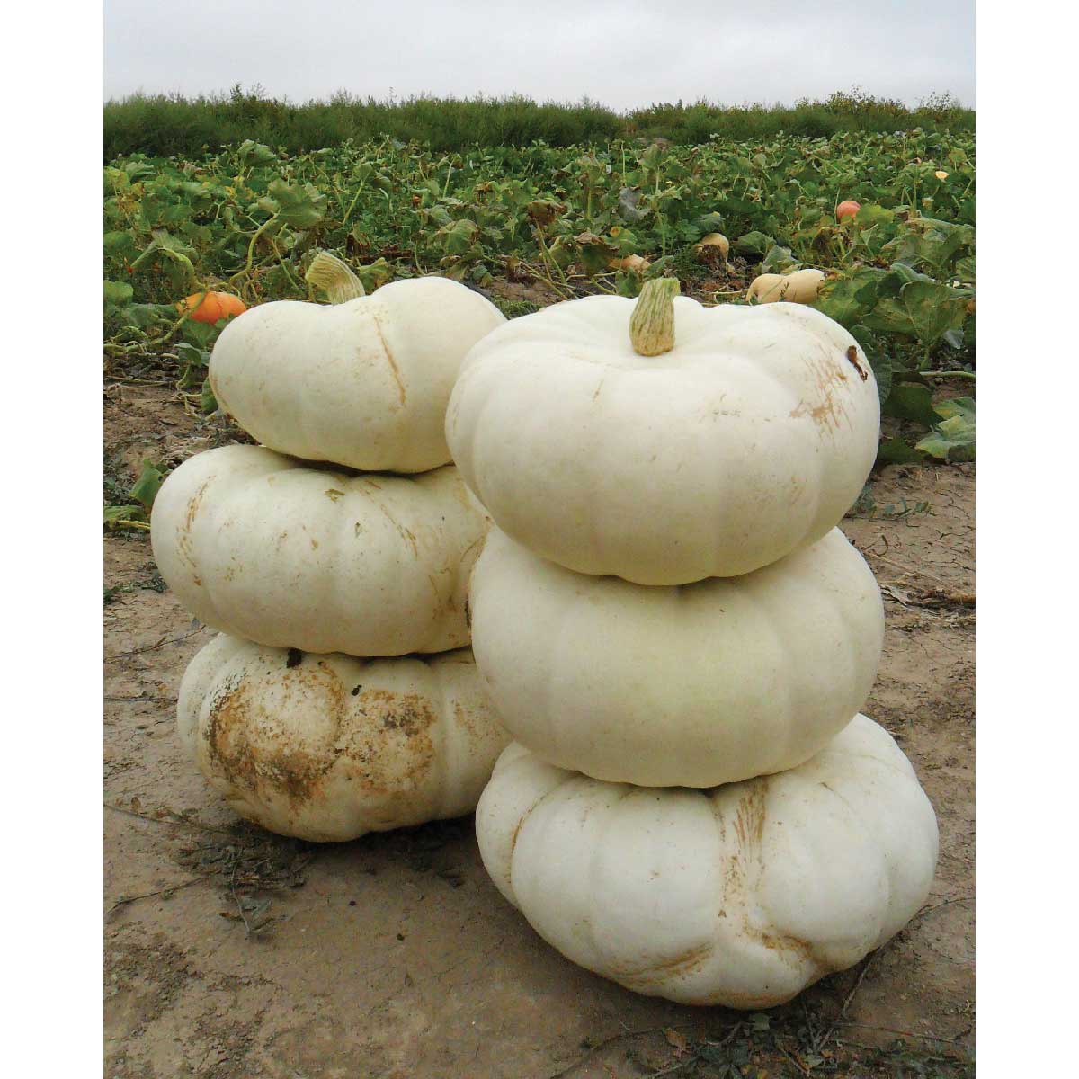 (10-15 lbs.) Moon Stacker is extremely oblate with ribbing and as its name implies, makes for an excellent stacking pumpkin. This white skinned pumpkin has super thick, bright yellow/orange flesh. Long storage life and full vine habit round out this pumpkins features. 95 days.