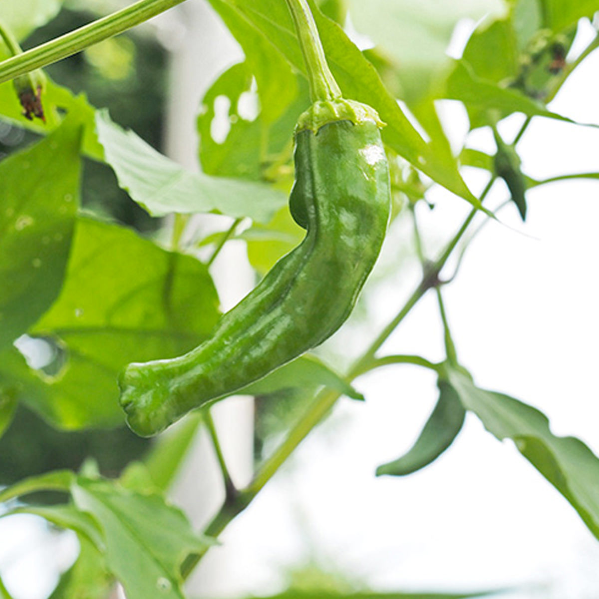 A mildly hot pepper, BUT it’s said that 1 out of every 10 peppers will be ‘spicy-hot’, which is why snacking on them can be an adventure! The thin walled 3-4” peppers are wrinkly with a folded end and mature from shiny pale green to red, but most often harvested in the green stage. The 24” plants are sturdy and produce continuously until frost. Suitable for containers. 60 days from transplant.