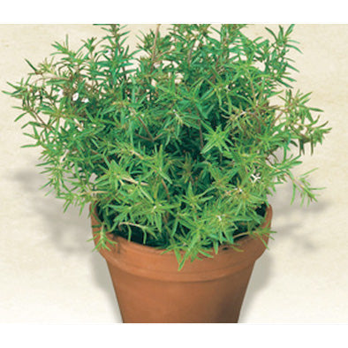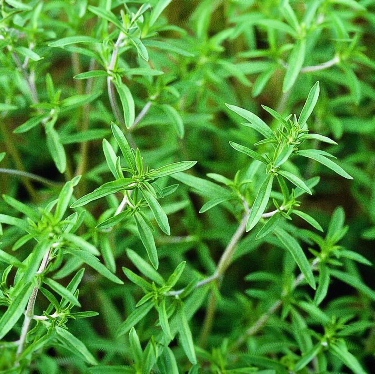 (12”-18”) Highly aromatic plant with 1” gray leaves that turn purple in late summer and have a peppery, thyme-like flavor. When planted with beans, will help deter bean beetles. Full sun.