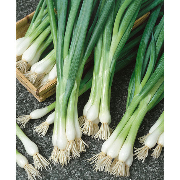 This sweet and crisp scallion has been beloved for over 200 years. It is heat and cold tolerant and can be planted spring or fall. White Lisbon can also be grown in the greenhouse or cold frame. It has long, clear white stalks with bright green tops and stores a long time after harvesting. 60 days, spring. 110 days, fall.
